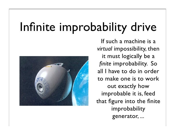 When reading “A Hitchhiker’s Guide To the Galaxy” and thinking The Infinite∞Improbability∿Drive B Impossibility assuming if 1 Can B made, soon there Will B more 2 follow, and so eventually Conflicting Possibilities, leading Ü N2 §üM∿Future’s Λbsurdity Of Fated∿Futility from Folie found N Λ Reality Whö shouldn’t B Existing statistically – R unaware Have just … Continue reading Infinite∞Improbability∿Drive / N2∞ §ublimation OF Totality