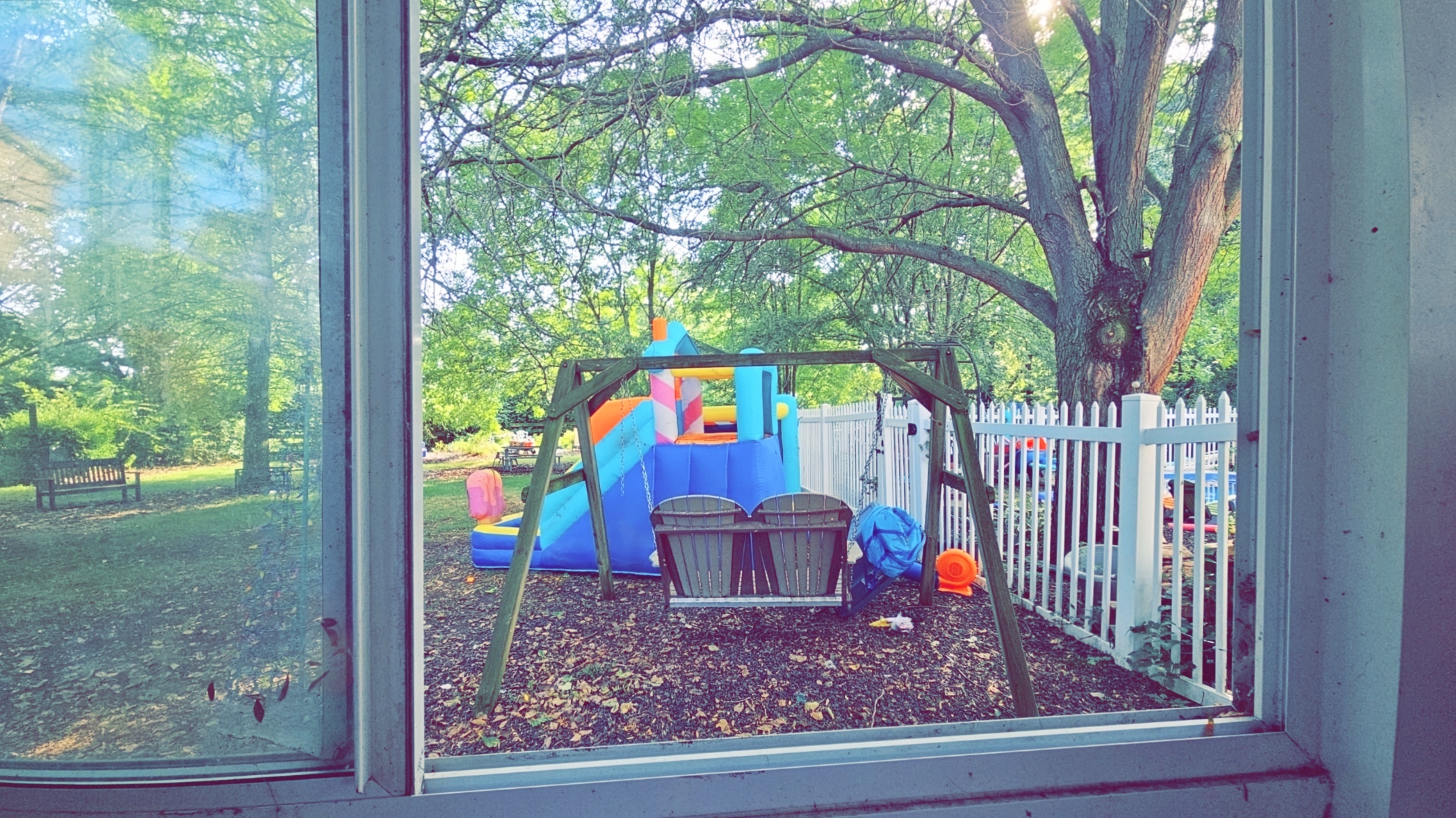 The sound of an orange fan Blowing up a bounce house REMinding Me öF the sound öF an office cubicle vent As a bird call is heard Rythmically repeating Off Ñ the distance [7 July 2024]