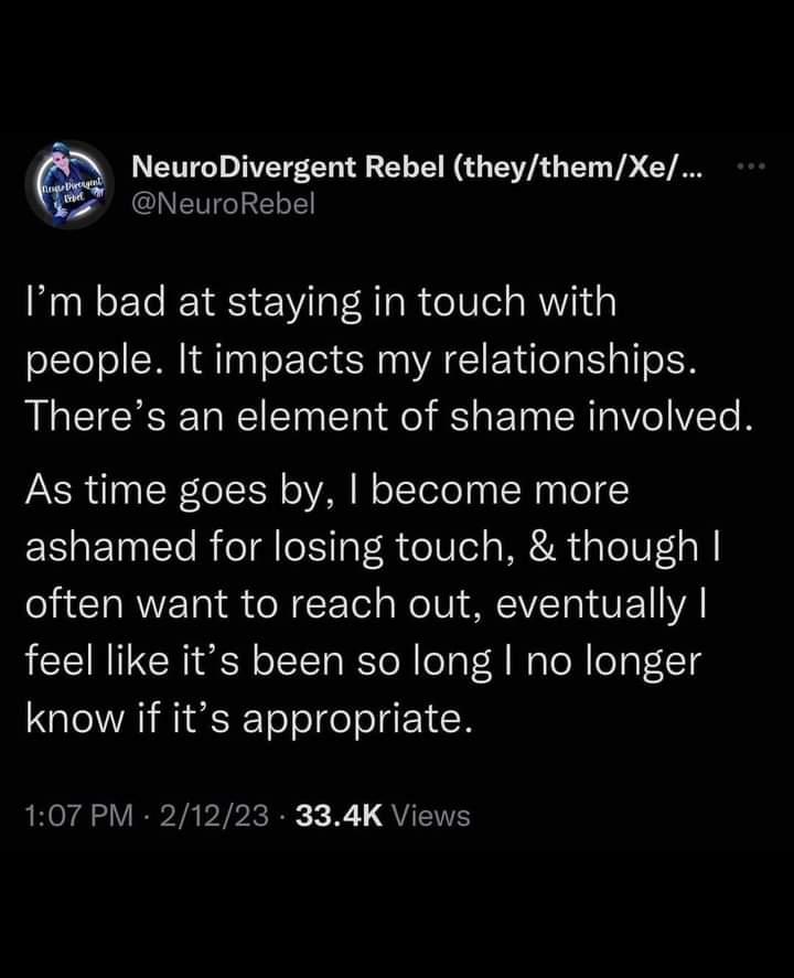 Time is an illusion. Shame is a scam. Any Time is an appropriate time to reconnect, and Now is the best Time. Especially when it seems so many are experiencing this loneliness.