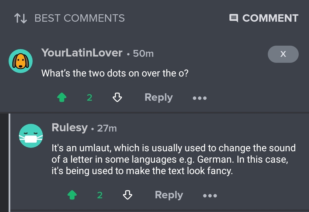 2 •• dots above letters & together R called ümlaüt & normally will alter how it sounds although I use them as part of my Pöetic☯Λesthetic thus, there’s a couple overlapping reasons/meanings to when/why I use them although – the general reasoning B Me trying to bring attention to/elevate the words, so bringing attention to … Continue reading “What’s The Two Dots On/Over The ‘O’?” – YourLatinLover (Pöetic☯Λesthetic & Åliėn Perspective)