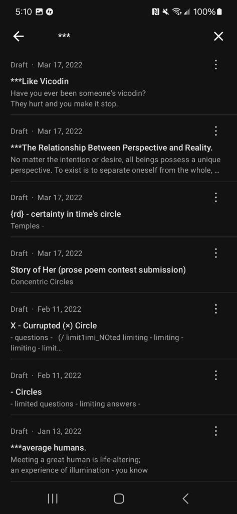 Numbness flooding my body – it didn’t feel real; falling from the heights of heaven towards the depths of hell & no will to catch my self; feeling nothing as I greeted ground. Then the pain – the perversion of thought – my Inspiration snatched away; no longer could I think, for thought was now an agent of despair. Darkness swallowing my life, light fading from the world, inspiration withering away; my §××××××××§ was lost – an emptiness like an abyss having taken its residence.
