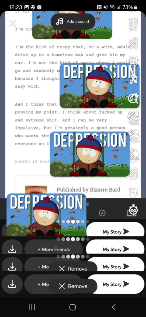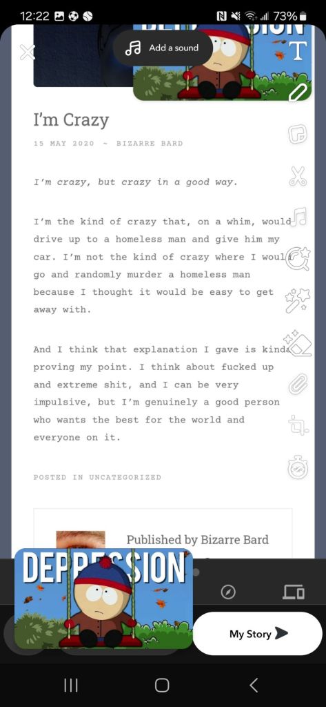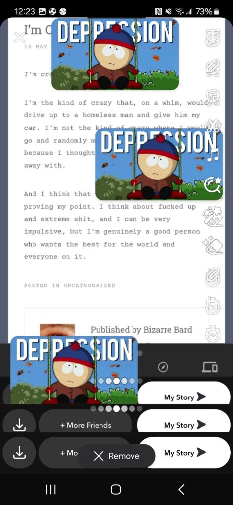 And I think that explanation I gave is kinda proving my point. I think about fucked up and extreme shit, and I can be very impulsive, but I’m genuinely a good person who wants the best for the world and everyone on it.