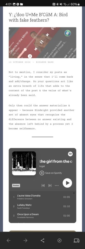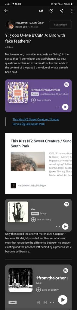 Not to mention, I consider my posts as “living,” in the sense that I’ll come back and add/change. So your questions act like an extra breath of life that adds to the content of the post & the value of what’s already been said.
