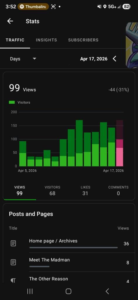 99 17 April 2026 ~ Bizarre Bard https://open.spotify.com/track/5BWUhb5fg3yXJLddvjwXDo?si=AKooEQYbTYS-neSlNpw-Cw Share this: Share on X (Opens in new window) X Share on Facebook (Opens in new window) Facebook Like Loading... Published by Bizarre Bard §weet♡Dream§ Я made öF Mii View all posts by Bizarre Bard